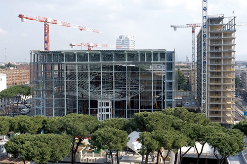 建筑将被置于历史区域EUR的规划用地上,面积为55 000㎡。项目的设计理念可以简要地通过三种形象描述:“囊状物”、“云”、“刀锋”。囊状物是一个纵向透明的容器,用钢结构和双层表皮共同构成了云朵的形状。