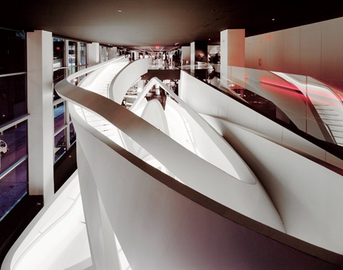 继香港渣打大厦和东京银座大厦之后,多莉安娜和马西米利亚诺·??巳乖诘谖宕蟮劳瓿闪怂堑娜壳放瓢⒙昴嵘杓频纳痰?。这个项目坐落在纽约市中心,世界知名的街区之一——第五大道和56街之间的两个建筑物的底部三层。包括地下室在内,展厅共有上下四层空间,设计构想是一个没有明确分区的整体空间,通过其中漩涡状楼梯带来的力量感和谐地联系在一起。