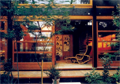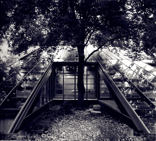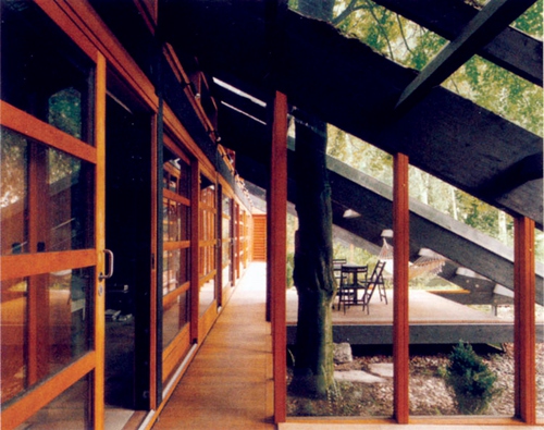 该住宅的基地被绿树环绕,而它的周围是一些建于20世纪50年代的多层建筑,地面标高低于街道水平面2m。并有一条来自生物小区的小溪从中流过。为了与这些有生命力的自然环境形成对比,我们设计了一栋结构简洁的住宅。无论是室内还是室外设计,都充分考虑了几何美学特征。屋顶以倾斜玻璃顶的形式一直延伸到地面,这样南面的阳台和温室起到了温度过渡区域的作用。这些空间并不是建筑前面的附加部分,而是形成了整体布局中不可缺少的部分。外在的设计反映了与功能要求的一致性:对太阳能的直接应用,以及创造内部空间与精心设计的外部空间之间的联系。