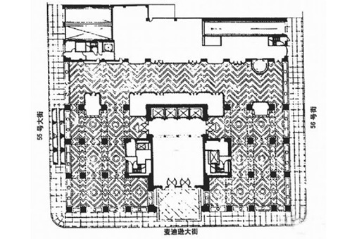该建筑是接受文丘里的理论后建立的后现代主义建筑,现代建筑的加上历史符号,颇具戏谑精神。