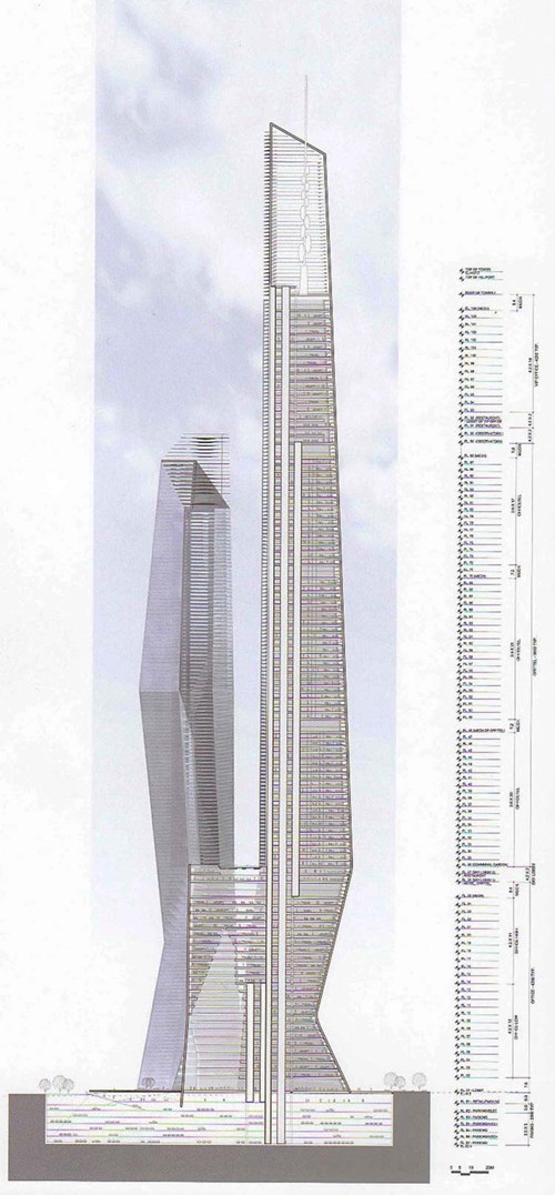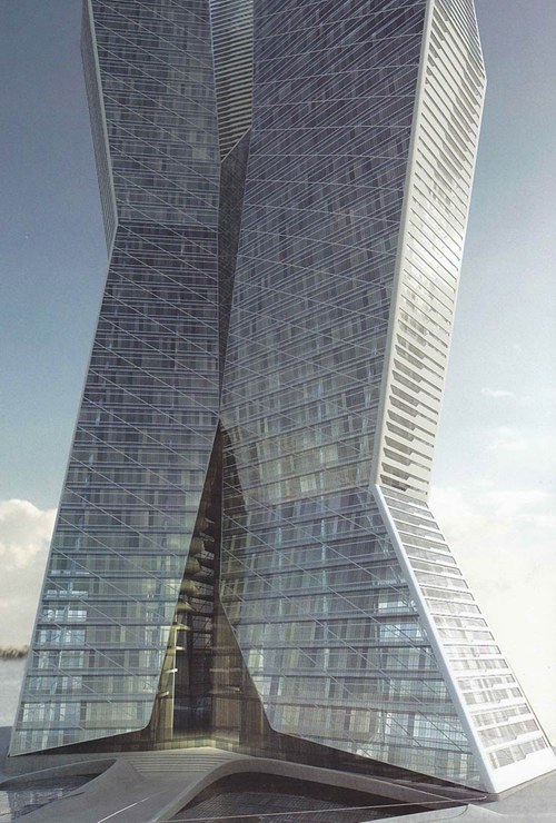 渐近线建筑事务所负责人Hani·Rashid说:“我们的设计是将城市空间结合进建筑的中部,较低的部分则是30层的办公空间,包括在一座室内、室外公共广场和空中大堂中。
