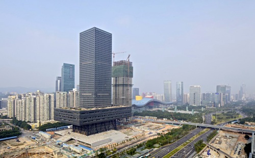 这种种因素都在呼唤建筑上的新突破:我们的设计是一座拥有被抬升了的基座的大厦。投机的兴奋驱动证券交易市场,之前的基座也犹如被相同的喜悦抬升了一样,沿着塔楼攀升,成为一个抬升的裙楼。在空中抬高基座使其更备受瞩目;在其被升高的位置,证券交易市场的动态可以被“播放”于整座城市。地面被解放出的空间可用作有顶的都市广场,举行各种公共活动。楼高246米的深圳证券交易所旨在成为一个拥有公民意义的金融中心,位于一个新的公共广场上,在莲花山及滨河大道之间的南北轴线、以及东西轴线兼主干线深南大道的交汇之处。