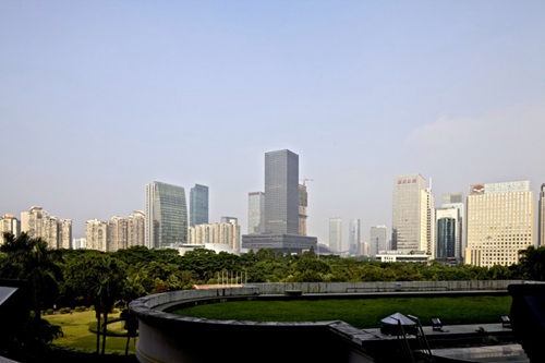 塔楼通常的长方形型态顺从了周边塔楼一致的发展,深圳证券交易所的外立面却与众不同。塔楼的结构是一个覆盖了一层压花玻璃表层的坚挺的网格——这种玻璃首次在中国被用于外墙。压花玻璃展现出建造的细部和复杂性,同时随着塔楼在光线的作用下,营造出一种神秘的晶体效果:在明媚的阳光下闪闪发光、在阴天显得柔和、在黄昏中影调渐变、在雨中微微透露光泽、在夜晚展露光芒。