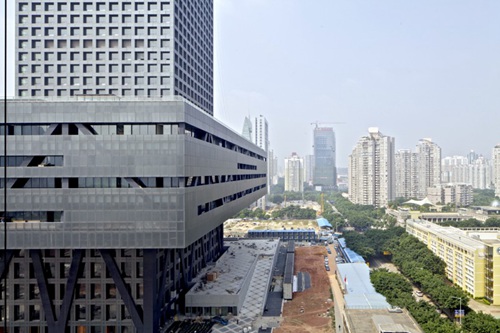 千年以来,坚实的建筑矗立于坚固的基础之上;这个关于建筑的印象跨越时间,在现代主义中存在下来。一般来说,基座锚固结构,并断然地将其与地面连接。证券交易市场的精粹是投机:基于资本,而非重力。对于深圳趋于虚拟的证券交易市场,象征意义超越了功能——这是一座必须能代表证券交易市场的建筑,而非单单物理性地容纳它。它不是带有办公室的买卖场,而是一座拥有各种虚拟交易设施的可以展示和演绎证券市场交易过程的办公空间。