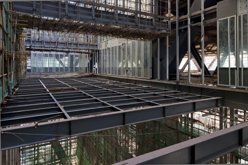 此项目于2013年竣工,三层的悬浮裙楼由2.7万吨钢建造,一个支撑桁架的连接构件重达172 吨。在此项目中,OMA 采用了一种国外建筑师甚少采用的做法——OMA 在驻工地办公室直接与业主共同合作,监督项目工程及设计细节。OMA 团队由协理建筑师Michael Kokora 带领,总体管理由合伙人大卫﹒希艾莱特 (David Gianotten) 负责。