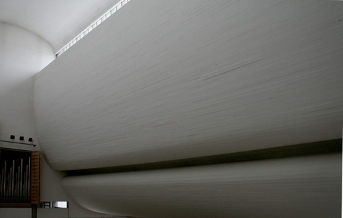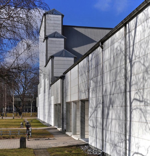 由2003年普立兹克建筑奖得主Jorn Utzon所设计的这座白色素雅教堂,完成于1976年,位于哥本哈根市郊Bagsvaerd的一块40m×100m基地上。在60年代末70年代初,丹麦建造了许多以服务城市居民的教堂,Utzon的这座教堂可说是这一时期丹麦教堂建筑的代表。