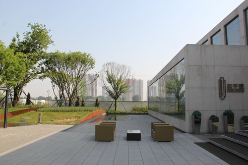 通过整齐划一的外立面不断的重复,使轮廓分明的天际线与成组群的建筑共同构筑出一种整体效果: 后退的“背景”。建筑“背景”有效的烘托出周边与内部的绿色景观环境以及下沉广场等日常活动空间。