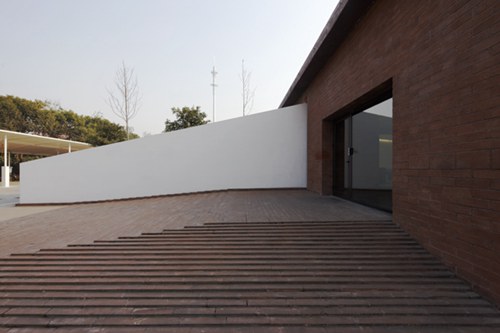 材料:小型空心混凝土砌块、竹集成材、水磨石、氟碳涂料、水泥基自流平