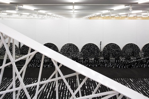 框架混凝土结构,局部大跨度采用预应力混凝土。二层主要展览空间或报告厅采用大跨度,不影响空间使用功能;局部大跨度梁做成反梁成为室内的休息长凳。一层空间是6x6 米的结构网格,局部跨度(按照二层空间形式)增大为12米,18米或24米。所有柱子都与墙体脱开,独立呈现,柱子的不同尺寸精确反映结构的荷载量。