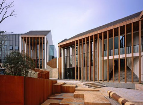玉鸟流苏应当算是个旅游项目,内容基本是吃喝玩乐,是良渚文化村的一部分,紧挨着杭宁高速。这里原来就有个村庄,地势起伏。参与设计的四个事务所有张雷工作室、大舍、维思平和我们。张雷和我们的设计盖好了一半,其它的还在施工。