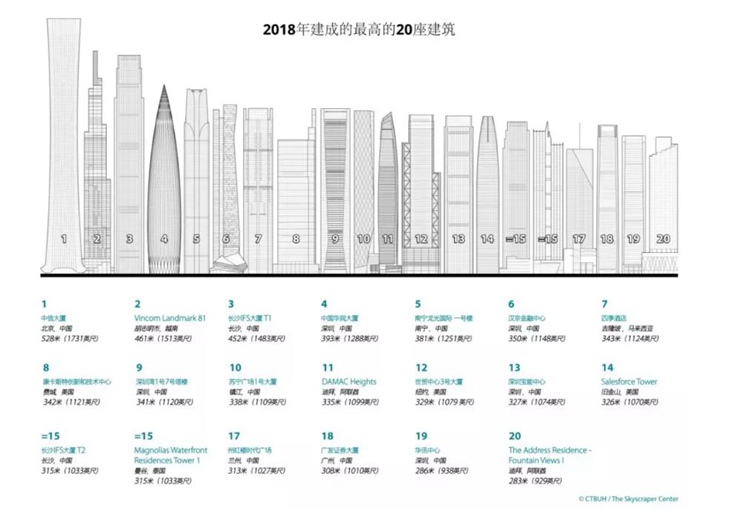 而美国2018年完成了13个摩天大楼项目,仅次于中国,阿联酋则以完成10个项目排名第三。