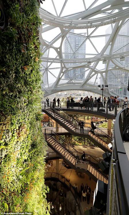 在经过了整整七年的规划之后,亚马逊的西雅图总部终于对外开放了。亚马逊豪掷50亿美元,在西雅图的市中心造了这座城市中的热带雨林。这个被称为“亚马逊球”(The Spheres)的建筑内种植了四万种植物,为亚马逊的员工创造了一个与河流、森林和瀑布共同生息的乌托邦。