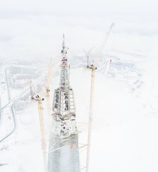 位于圣彼得堡的Lakhta中心(拉赫塔),建设两年半,于近日完成顶部尖塔的安装,达到设计高度462米,超越伦敦的碎片大楼成为欧洲第一高,和碎片大厦还有点像,就是碎片又拢了拢,有一点旋转的态势,同样是旋转,要比上海中心更加刚劲有力,像冰雪大地上拔起的冰钻一般……