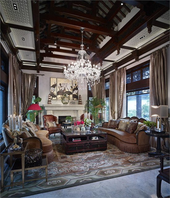 在室内风格的选择上我们遇到了很大的挑战,关于所谓中式有太多的设计方向,但是我们认为在这个项目中当前的一些中式做法无论如何都不适合这座中式大宅的室内设计要求。在这座大宅中所体现的中式风格应当是独特的,具有一定的传统中式风格的意味但同时又应当是时尚的、具有华贵装饰性的。最终我们认为我们所想要的中式是一种应当被现代人,不光是东方人甚至还有西方人所认同的中式,这种现代中式风格是中西方融合的中式。