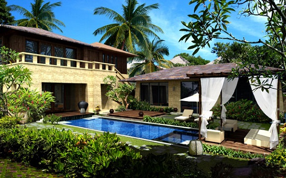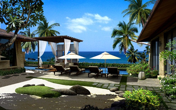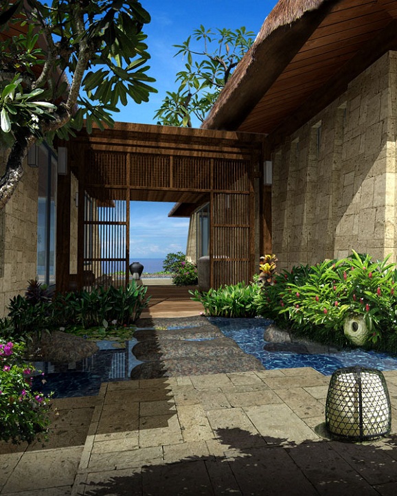 当今东南亚的建筑受中国秦汉建筑文化影响颇深,而中国建筑文化的源头始于商周时期。香水湾1号深知“文化没有全球化,只有本土化,本土化才是全球化的”,探究中国建筑文化本质,于别墅设计融入了商周时期的建筑元素。主体建筑对称布局,彰显威仪;屋顶用笔洗练,以人字形直檐划出完美天际;院墙采用进口米黄石及黄火山岩等海南当地原材料细致铺就,屋面用茅草或平檐板,立面为进口凿面石材,庄重厚实,气势恢弘。