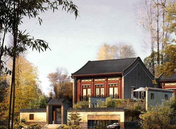 北京的观唐中式别墅在回归中式院落的生活意念和精神境界同时,又吸纳了西式别墅的现代生活流线,以符合现代人生活习惯的室内居住空间实现舒适的居住生活。其内在的空间布置,以大面宽、小进深的方式实现住宅的生态化特征,延用地周边集中布置的布局方式,实现内部连通,同时室内空间采光的均好性和冬季保暖效果又得到保证。综合体现了中西式住宅的优势,建成茹古涵今、中西合璧的中式宅院。