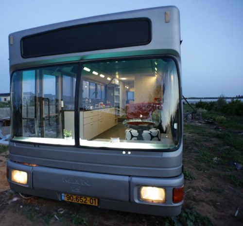 Tali Shaul是一名精神治疗医师,Hagit Morevski是一名生态塘水处理专家,当她俩各自的儿子开始一起玩的时候她们就成为了朋友。两人志趣相投,很久以来一直在寻找一个融入商业智慧的创造性项目计划,最后她们在翻阅一本女性杂志时找到了灵感。Shaul 说:“我读到了一篇关于替代性住房方案的文章,比如说集装箱和帐篷灯。”也就是那一周,她们去了一趟废车场,买下了一辆旧公交车。除掉里面的座椅,把车子清空之后,她们犹豫着是保持车子原来的布局还是把它改造成集装箱式房屋。因为无法做决定,她俩就去找朋友Vered Sofer Drori设计师帮忙,他最后想到了一种解决方案,在保留车子原来布局的基础上设计生存空间。