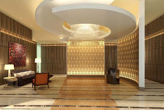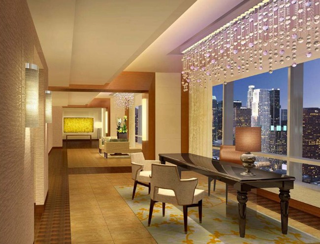 大厦的侧边22层容纳了万豪酒店(JWMarriott),另外一边的四层是丽思卡尔顿酒店,以上部分则是公寓。弯曲的玻璃幕墙缓和了不断变化的楼层之间出现的参差不齐。除了酒店,这里还有8万平方英尺的会议中心。通过天桥连接大厦的是一座2.6万平方英尺的舞厅。此外还有两座户外平台,设置了泳池、酒吧和会议室等。