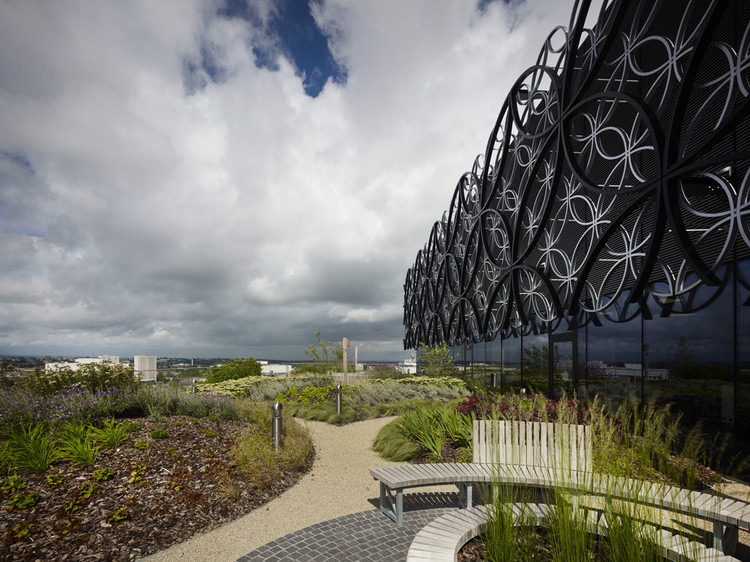 改建后的伯明翰图书馆有着透明的表皮,其细腻的表皮外饰与这座曾经的工业城市城市文脉息息相关。整个建筑高效节能,配置灰水系统和地源热泵。虽然表皮是透明的但却节能。外皮的纹饰可以阻止过多的阳光进入建筑,同时让内部空间获取足够的自然光,同时外表皮皮的部分区域可开启,能引入自然通风。地面广场挖出的圆形庭院为地下层带来光明与通风。