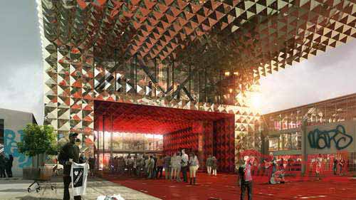 MVRDV建筑事务所和COBE公司合作设计的丹麦罗斯基勒摇滚博物馆正式开工建设。作为ROCKmagneten规划的一部分,位于Roskilde市的项目预计将于2015年对外开放。整体音乐区包含三座新建筑和一座翻新工厂,后者将于明年改造成艺术家、音乐家和创意人员社区。博物馆建筑特色是主入口上方20米的悬臂梁以及外立面上的金色铝制金字塔形装饰物。