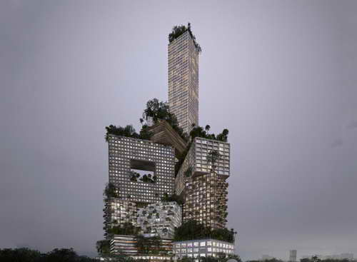 Peruri 88项目在借鉴现代城市结构类型的同时,结合了雅加达与项目自身的需求:绿色空间以及更高的密度。MVRDV长期以来都想要创建一个高质量生活与高度可持续发展的垂直型城市的想法,而这座塔形建筑认证了他们的追求。这360.000平方米的综合使用建筑,包含了丰富多样的住房、办公室以及商业空间,同时包含了各类内外公共区域。