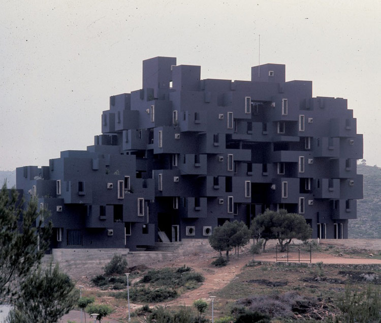 从外形上看,卡夫卡堡和萨夫迪的集合住宅67(1967年加拿大蒙特利尔万国博览会的作品)很相似,都是利用独立方建单位群集而成,房间单位的平面位置多变,显现出和谐与丰富。单元交错放置,建筑层叠而上排列成不规则方块机体。外观单纯朴素,空间变化富有趣味和动感。