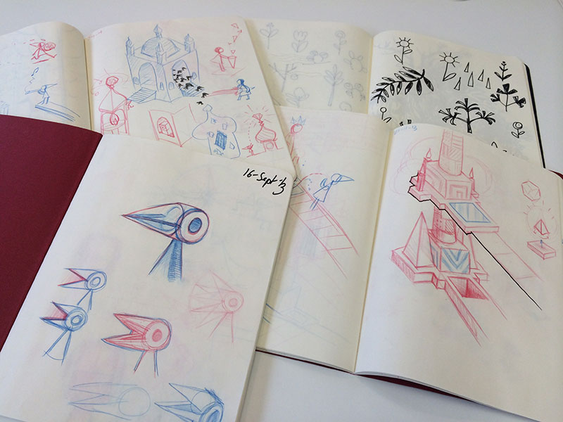 谈及纪念碑谷的设计和开发的时候,Ken 勾勒出这个基于建筑的游戏原型然后开发团队接手了过来,然后在频繁的失败中逐渐迭代。这个游戏的设计并非仅仅只是视觉上的设计那么简单。