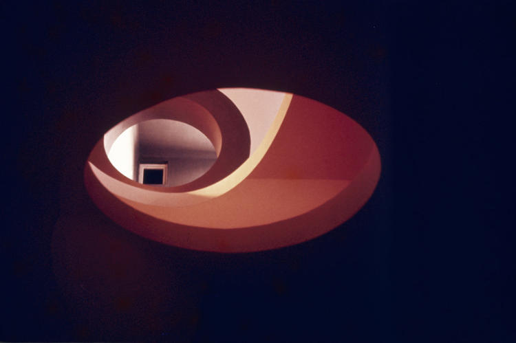 进入建筑内部,你会发现整个项目更像是一场由设计者发起的几何游戏。尽管没有“红墙”公寓层次丰富的色彩变化,但在建筑的各个角落,那些由方形、半圆、椭圆等形状组合成的几何图案,在给人带来惊喜的同时,也制造出了一种不真实的感觉。