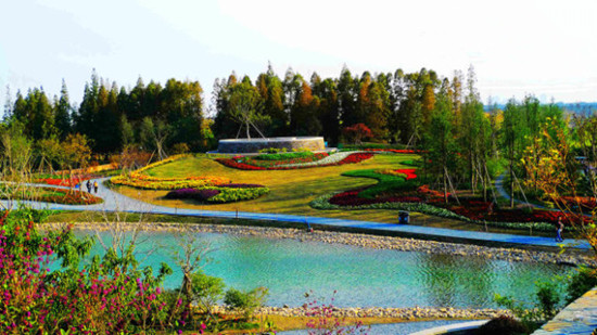 平湖区位于花园的西区,是游客从主入口进入花园后首先映入眼帘的景色,该区域曾经是死气沉沉的岩石表面,除了在其东南边上有部分水杉林。设计师通过挖掘和土地回填重建地形,形成了新的“镜湖”和“花海”。“镜湖”结合另一个游客中心通过与深潭的平衡关系和湖面的反射作用有效减少了山体垂直面上带给人的迟钝感,而“花海”所在的南部山丘不仅隔离了外界的干扰,也为花卉种植和展示提供了理想的空间。