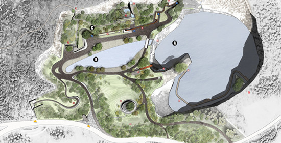 作为一个对废弃采石场改造的勇敢的尝试,该项目已成功地应对各种挑战和显示以下特点: