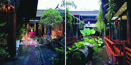 物、树木等,同时保留原有的院落划分,使整个街区依然按照原有格局分布。实施过程中大部分建筑采用传统的木结构形式和传统施工工艺,根据测绘图纸落架重修;充分利用原有建筑材料与装饰构件;妥善?;ね燎?、砖墙、门头、构件等不需更换的部位。在科学的实施策略指导下,采用了保留、回迁、合作、统规自建等方式,充分体现了居民参与的原则。而合理的商业规划使得成都最闲适优雅的生活氛围得以展现。