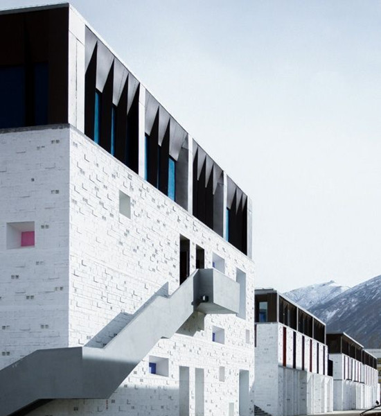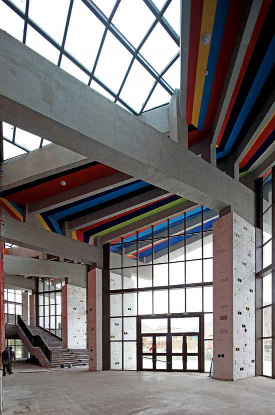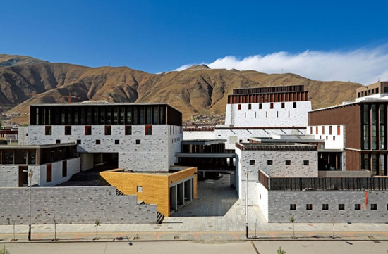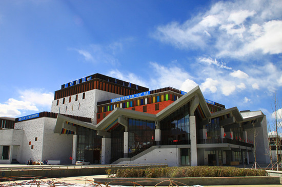 康巴艺术中心位于青海省玉树州结古镇,占地面积为0.94hm²,总建筑面积约为2.04万m²。康巴艺术中心是玉树灾后重建项目,援建资金全部来自于社会援助,功能包括1000座剧场、300座小剧场、电影院、剧团、文化馆、图书馆等。该项目尝试通过再现院落空间的功能组合体现传统藏式建筑的空间精神,砌块砖涂料墙面及彩色涂料混凝土的做法都是力图在低投入下完成高品质的群体建筑的尝试。