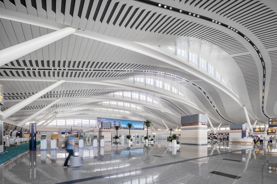 由中国建筑西南设计研究院有限公司(CSWADI)牵头,Aedas及上海民航新时代机场设计研究院合作设计的烟台蓬莱国际机场T2航站楼于2024年6月投入使用,每年为烟台机场提供2300万名乘客和20万吨货物的总容量,为城市发展赋能。
