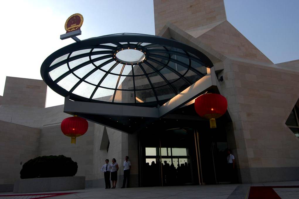 入口大堂造型独特,其鲜明的现代建筑造型是中国驻美国大使馆的标志。宾客可由大堂前往各会客室和宴会厅,以及用于重大外交活动的多功能厅和新闻发布厅。