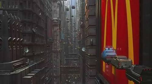 20世纪60年代以后,巨构建筑思潮的影响在世界范围内达到顶峰。影片《银翼杀手》中,未来的洛杉矶城被设计成由几个巨构建筑组成的建筑群体。影片的布景设计师、同样也是建筑学出身的未来派视觉艺术家米德(Mead,Syd),在电影中尽情展现了巨构主义建筑师们的想象力。对技术至上和无限能源的崇拜使得他们迷信于将巨大的垂直集中城(monolithic)当做是解决未来城市发展问题的唯一手段。庞大的功能又要求这种城市是可变的,高科技的手段使得城市可以对居民的诉求做出反馈。因此,《银翼杀手》中巨型构筑物的光滑表面可以反复变换着它的外层表皮,隐喻着城市的应激和可变性。在米德的设计概念中,“巨构建筑不断的修正和调整以适应需要,最终形成由网络、管道和科技碎片所包裹和调节的动态建筑。”
