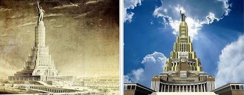 而有趣的是,巨构建筑思潮在20世纪上半叶发展最快的两个国家恰恰都是集权统治下的工业强国,一个是制定了了苏维埃宫建设方案的苏联,另一个就是雄心勃勃,臆想着建设世界之都“新柏林(日耳曼尼亚)”的纳粹德国。在苏联的苏维埃宫中标的方案中,建筑设计高度达到415米,高出埃及胡夫金字塔278米,德国科隆教堂255米,罗马圣彼得教堂272米,巴黎埃菲尔铁塔95米,纽约帝国大厦8米,是当之无愧的世界第一巨构建筑。而在希特勒的“新柏林”计划中,整个城市都将用昂贵的大理石构筑,对称式布局,其中包括一座400米高、能容纳15万人的世界第一大会堂以及比巴黎凯旋门还高2倍的柏林凯旋门。当然,这两个巨构建筑方案最终都没有实现,和他们的主人一起,带着权力与野心长眠于地下。