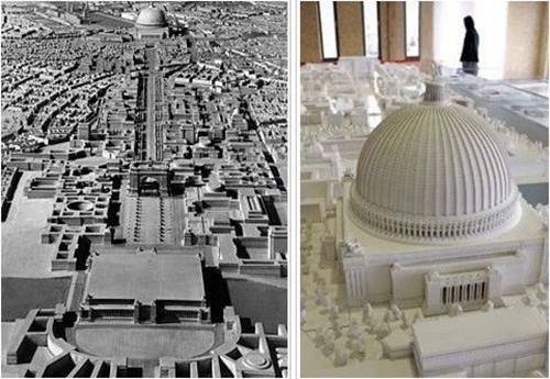 希特勒的新柏林规划模型,北端顶部是能容纳15万人的世界第一大会堂。