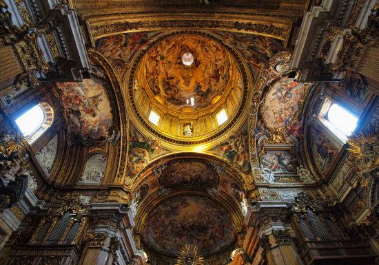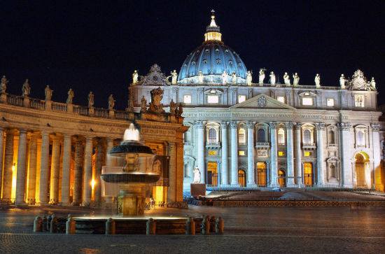 穿过宽阔的圣彼得广场,进入世界第一大教堂,圣彼得大教堂。大教堂的内部呈十字架的形状,富丽堂皇,随处可见是色彩艳丽的图案、栩栩如生的塑像,以及精美细致的浮雕。在十字架交叉点处是教堂的中心,中心点的地下是圣彼得的陵墓,地上则是教皇的祭坛。而教堂的上空自然是电影中滚落圣彼得广场的巨型圆顶,圆穹的周围及整个殿堂的顶部布满了美丽的图案和浮雕。你还可以拾级而上登临穹顶,当上到136.5米高的穹顶,可以俯瞰整个梵蒂冈城,以及大部分罗马城的景色,仿佛有种张开双手拥抱世人的微妙感觉。每遇周日,圣彼得广场天主教徒聚集,中午12点随着教堂钟声响起,教皇会在圣彼得大教堂楼顶正中窗口出现,向教徒们发表演说。