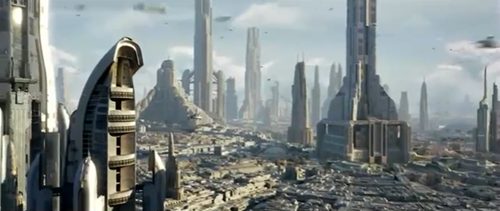 电影《星球大战》中的城市自芝加哥学派诞生以来,高层建筑已经走过了一百二十余年的历史。高层建筑在解决现代城市人口密集、用地紧张、资源分配困难等问题上做出了重大贡献。在电影《世界大战》中,我们可以看到电影对未来城市膨胀的看法。巨型的摩天大楼以及空中穿梭的飞行船作为交通工具,充满了哥特以及high-tech的意味。
