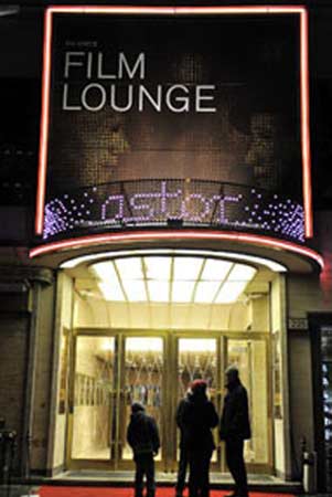 人们在进入影院前就可享受它提供的服务。门口站有训练有素的服务生,他们一眼就可从人群中辩认出影院的客户,并可代为泊车;影院内设有存衣处,这样观众就不必将衣物放在腿上或堆积在凳椅上;在保留了五十年代风格的大厅里,观众还可享受一杯免费的接风鸡尾酒。同时,观众还可以点订餐饮,如香槟、沙布利葡萄酒及一些可口的食物,这些餐饮也理所当然的送到座位上。