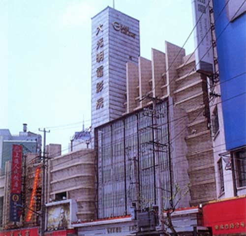 民国22年大光明大戏院拆屋重建,成为可以与同时代欧美建筑争艳媲美的早期现代派建筑的典型。设计人是匈牙利的邬达克(L.E.Hudec)(公元1893—1958),30年代上海最著名的建筑设计师,设计了60多幢建筑,如上海国际饭店、美商花旗总会、华东医院等。