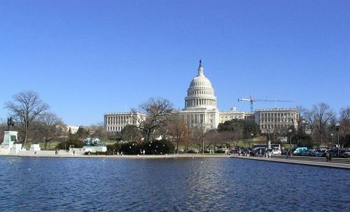 从远处望去,国会大厦是一座巨柱环立的建筑物,中间是皇冠形的圆顶式大楼,在华盛顿市内很多地方都能看到国会大厦的雄姿。