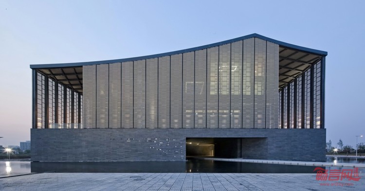 艺术馆的设计尝试混凝土结构与钢结构体系的巧妙转换,下部呈“凸”字形的混凝土结构与上部呈倒扣的“凹”字形的钢结构,形成虚实相生的朦胧意境。