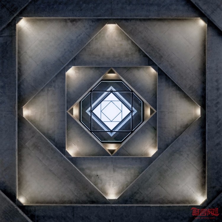 范曾艺术馆强调的“关系的院”,首先表现在同时呈现的三种不同的院落形式。建筑的底层是一个导引与疏通的院落,两组由门厅与临展厅组成的L型体量错位围合形成略为曲折的穿通性。由于空间正中位置的顶部类似于藻井的形式,故而称之为“井院”。建筑的二层有两处南北穿通的边院,居于大展厅东西两侧。由于两个穿通的边院呈现水与砾石两种特征,故称之为“水院”与“石院”。水院与石院成为展厅与外部空间的间层。建筑的三层是一个四边围合的内院,南北两侧的办公,研讨室和画室朝向内院采光。而东西两侧以朦胧的院墙作为围合界面。由于此院与上下左右四个方向均有交合,故称之为“合院”。