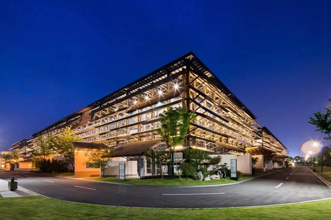 特别是外立面上采用260万片江南小青瓦,5.1万根钢索以网状肌理寓意互联网。整体呈现江南古老建筑与现代网络相融共生的和美场景,也和整个乌镇形成富有生机的时代对话。