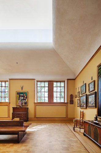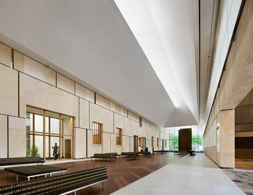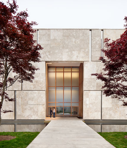 巴恩斯基金会的新址定在本杰明富兰克林公园大道上,这是一条从市政大厅通往费城艺术博物馆的路。毫发无损地将巴恩斯收藏挪往新址被视作是几乎不可能完成的任务,而处理这项由法院颁布的限制条件的难题落到了陶德·威廉姆斯(Todd Williams)和比利·钱(Billy Tsien)的身上,这两位杰出建筑设计师刚完成今年年初落成的香港亚洲协会总部?;鸹嵩鹊慕ㄖ诓慷济挥懈谋洌皇窃谠械淖钔獠慊群椭醒牒诵慕ㄖ淝度肓肆礁龌ㄔ耙岳┐罂占?,并略微地挑高了天花板。结构紧凑的画廊成为了一处校园更宽阔的部分,其中合并了一间餐厅(在老的巴恩斯基金会是没有的)、一处礼堂和一间重要的存储室。而最艰巨的任务莫过于采光问题,自然光糅合了最先进的采光技术给观者带来了全新体验。一切都与之前一样,赭石色的墙面、画作摆放的位置和那些装饰性的铰链(巴恩斯的另一喜好),但每一样又是不同的—比从前更好。很多参观者都问作品是否被清洁过,其实并没有。