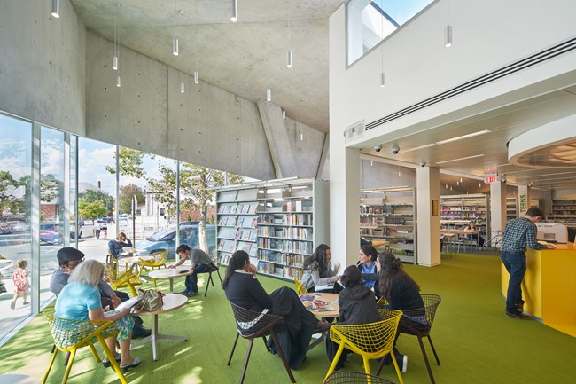 这座图书馆在丘园山社区里面已经成为了一个重要机构,它拥有全国图书馆中最好的上座率和发行量。而社区成员的一项倡议在设计中起到了关键作用,支持图书馆提供必要设施,并让图书馆在有了实体存在的基础上才与机构的重要性保持了一致。