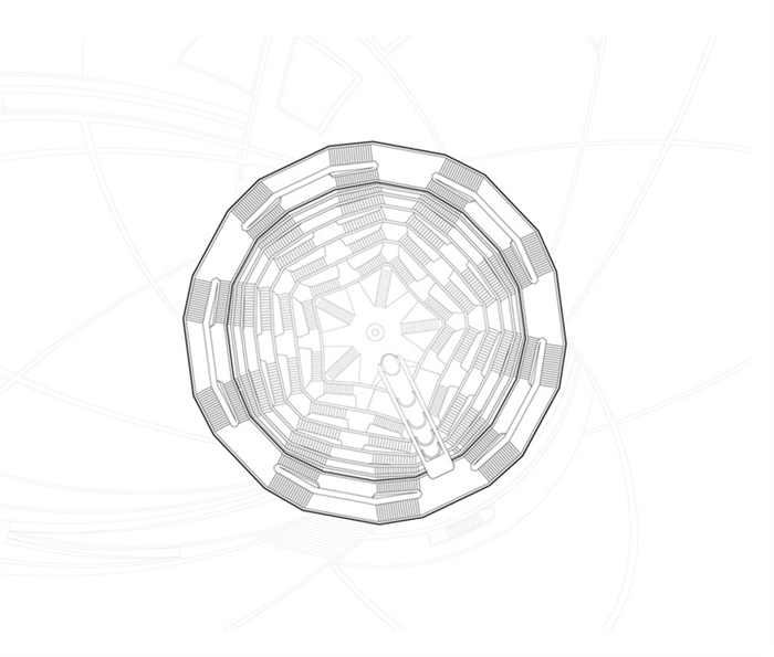 通过思维扩散形成三维点阵(three- dimensional lattice),公共广场向上拉伸,规划超过一英里的行走路线,并在垂直空间中探索多种路径行走的可能性。为了让154个楼梯和台阶相互连接的阶梯井形成连续几何图案,建筑必须是自支撑,这面临巨大的结构挑战,设计一个不用多余的梁柱的自支撑结构。