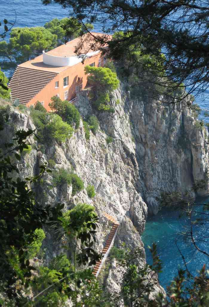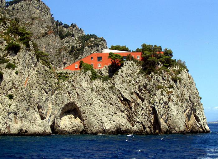 他于1933被法西斯流放到这个岛上,这个红色的住宅就像他自己的灵魂,刻在石头上的灵魂,1937年他邀请建筑师里贝拉(Adalberto Libera(1903-1963) )为他设计了这个住宅。但是业主和建筑师最终分道扬镳,马拉帕特在当地找了石匠完成了最终的建筑,他于1957年逝世。