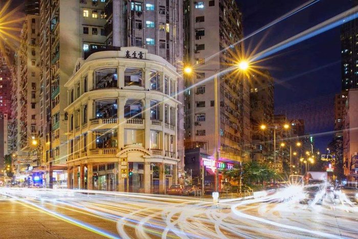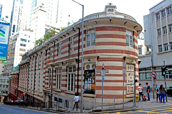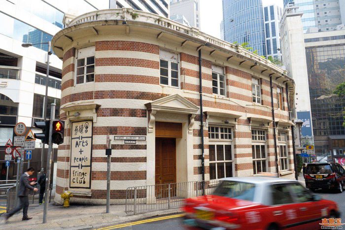 在中环云咸街与下亚厘毕道的交界处,有一栋醒目的红白砖建筑,也是游客打卡拍照和淘宝卖家秀的圣地(真的,上新款时节一个路口可以有两三个淘宝卖家在拍照)。尤其是白底黑字充满趣味的“艺穗会”更让此处增添了文艺气息。